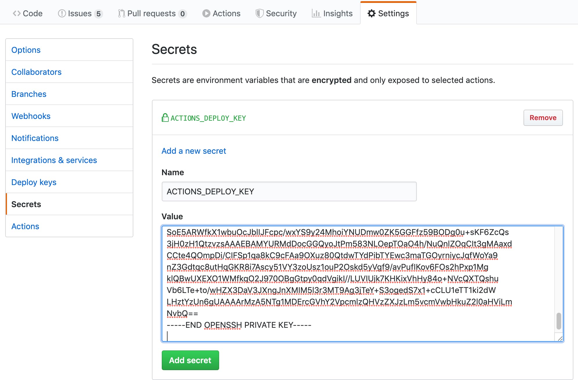 Set SSH Private Key deploy_key